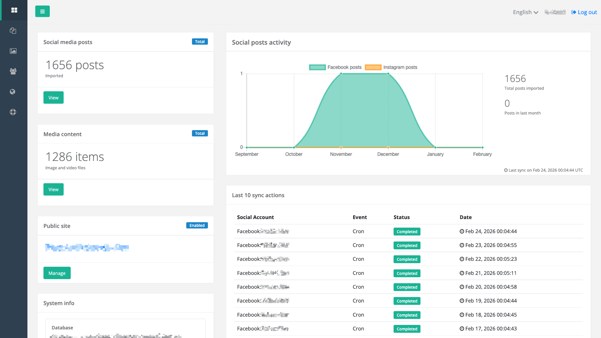 There is no limit on the number of posts and media files you can back up. As long as there is free space on your hosting account, SocialSync will automatically synchronize media files and posts.