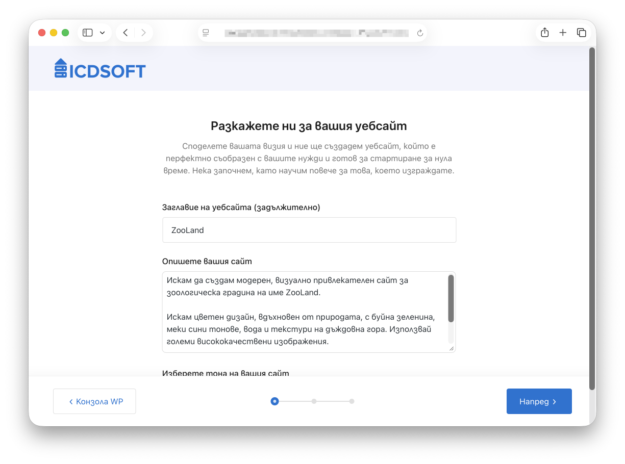 Опишете какво искате - Вашият WordPress сайт се създава веднага