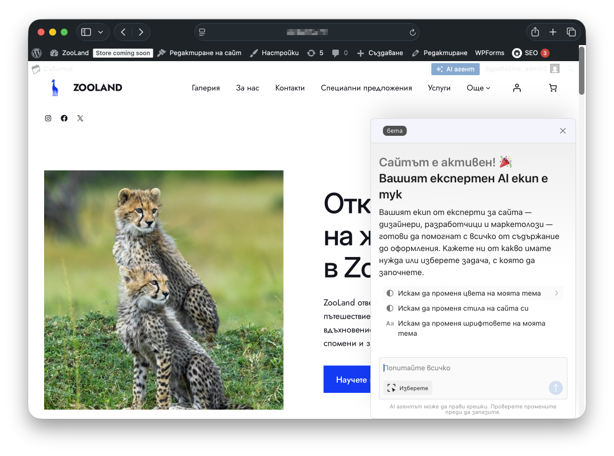 Заедно представяме AI асистент - мощен инструмент, с който можете да създавате, редактирате и подобрявате Вашия WordPress сайт - без кодиране, без сложности. Просто опишете какво искате и вижте как идеите Ви оживяват пред очите Ви.